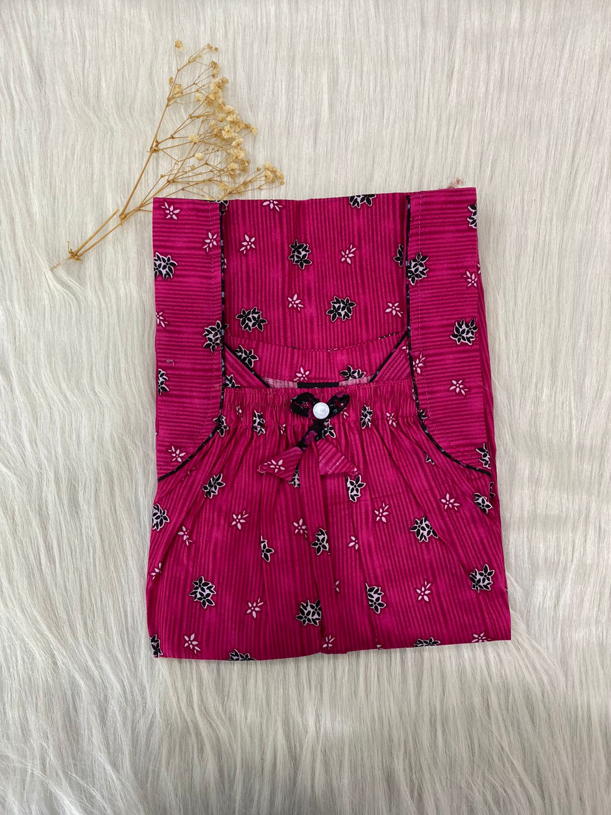 This nighty can be hand washed or a normal machine washed with cold water. Please make sure to dry the nighty in a light shade away from the direct sunlight. Prefer first wash as hand wash with cold water.