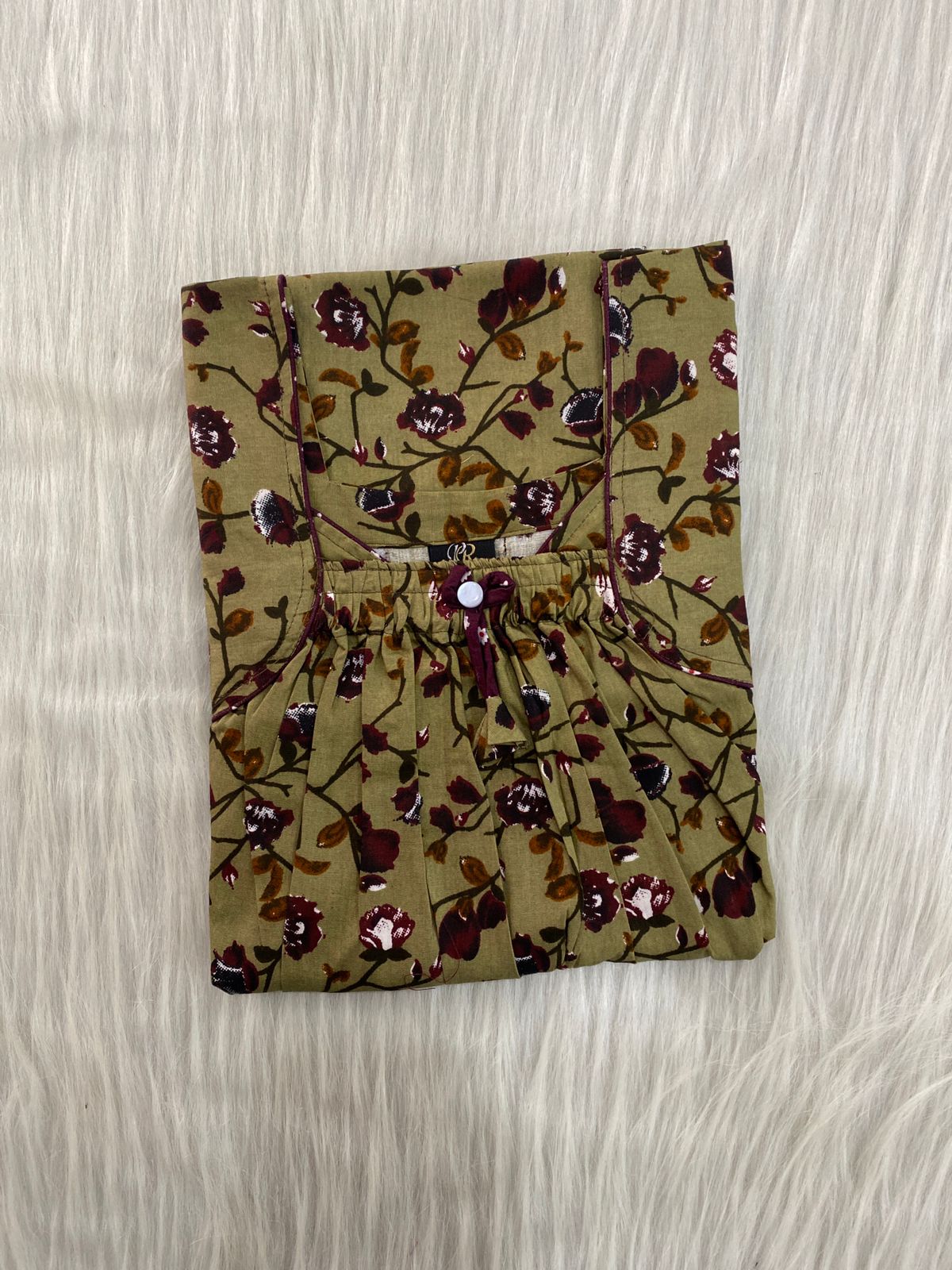 This nighty can be hand washed or a normal machine washed with cold water. Please make sure to dry the nighty in a light shade away from the direct sunlight. Prefer first wash as hand wash with cold water.