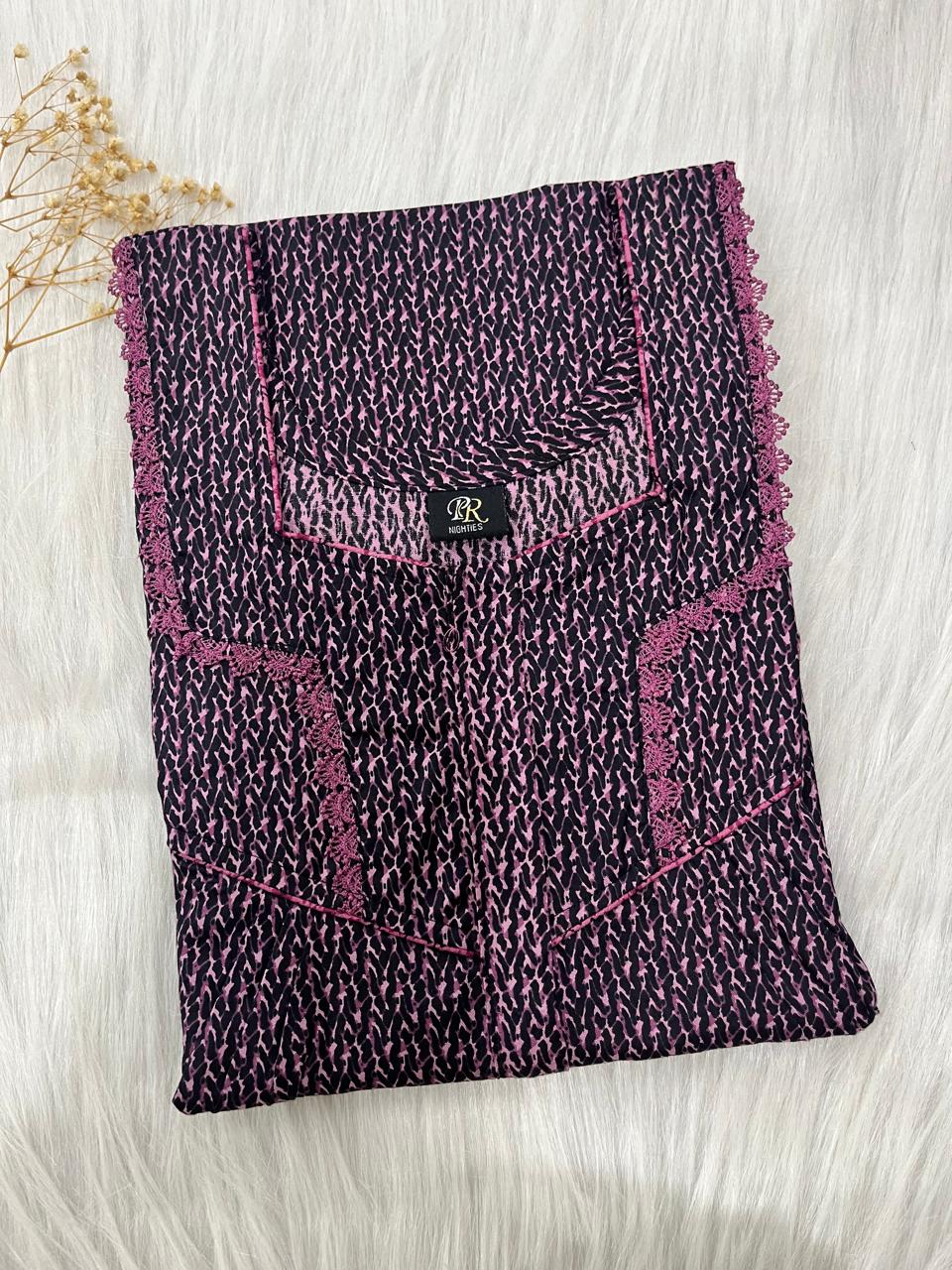 Home » Square Neck Premium Cotton Pleated Nighty With Matching Lace And Centre Long 12″