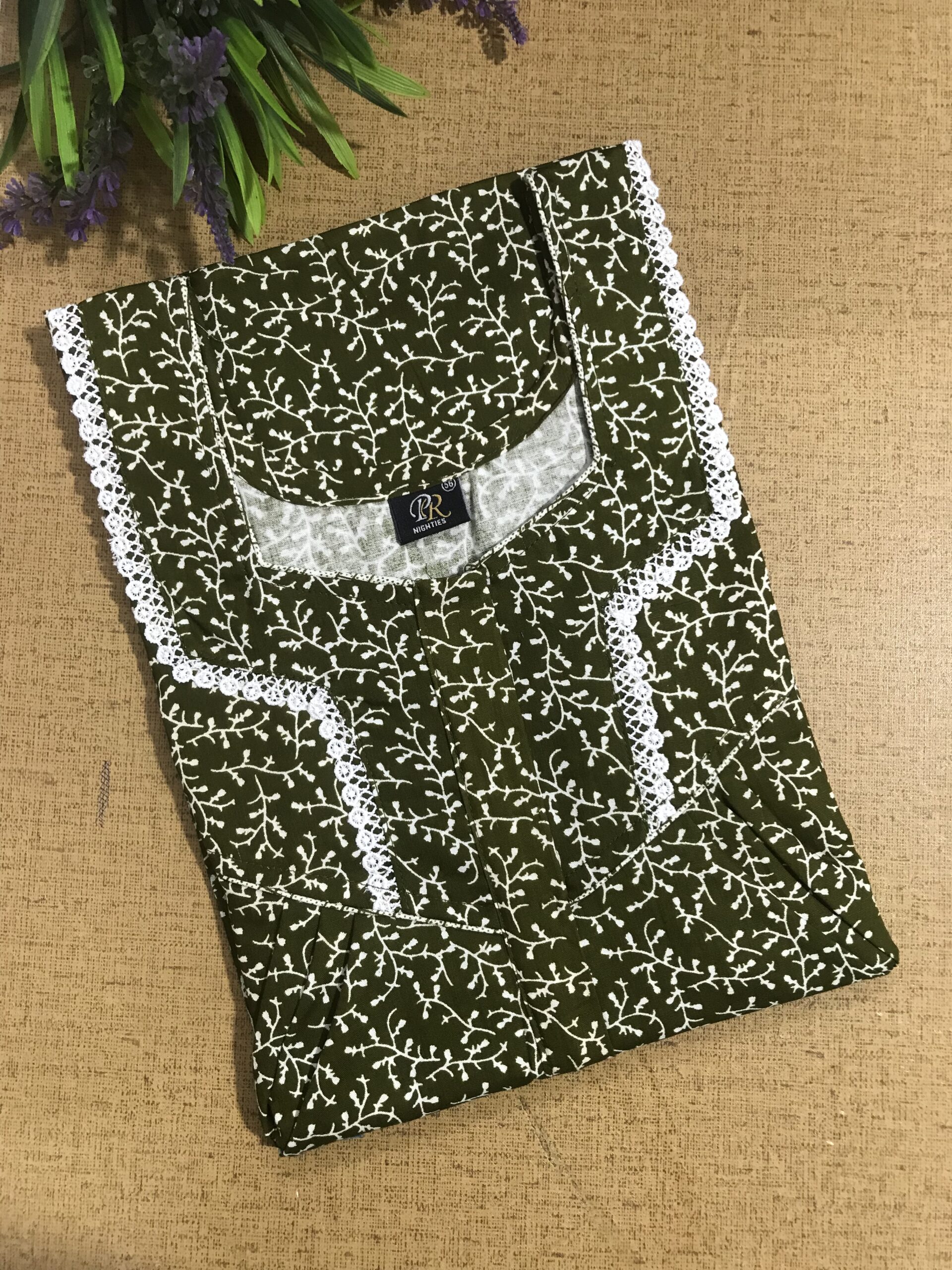 Home » Square Neck Premium Cotton Pleated Nighty With Matching Lace And Centre Long 12″ Zip