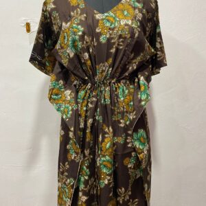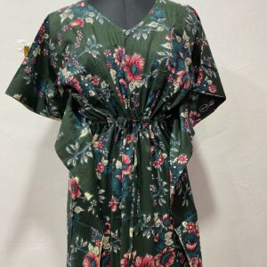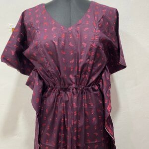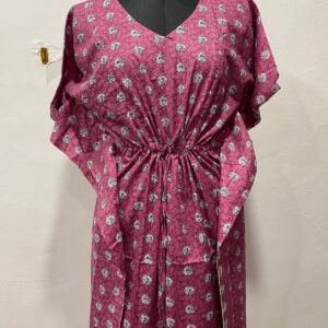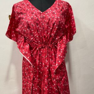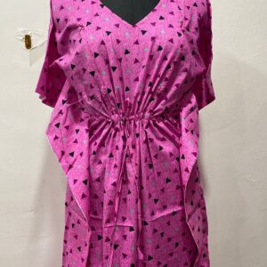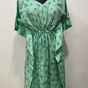 Cotton Printed Kaftan With Side Invisible Zip And Adjustable Tie