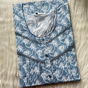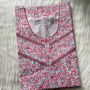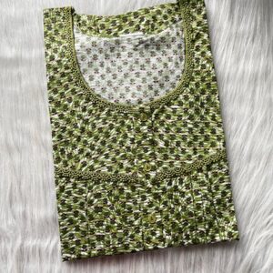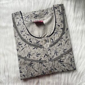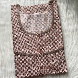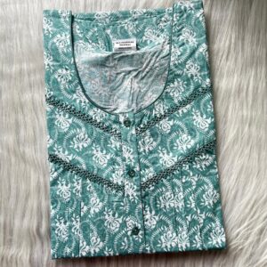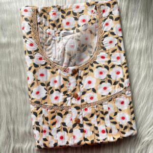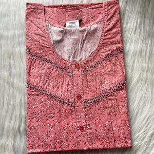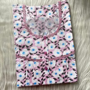 Pure Cotton Round Neck Button Open Pleated Nighty With Lace