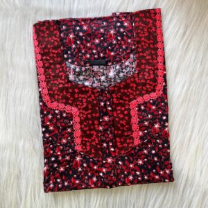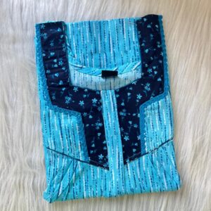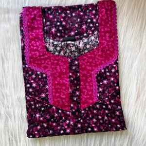 Square Neck Premium Cotton Pleated Nighty With Matching Centre Long 12″