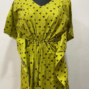 Cotton Printed Kaftan With Side Invisible Zip And Adjustable Tie