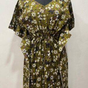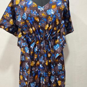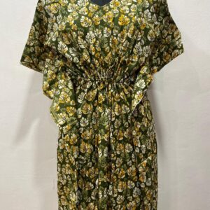 Cotton Printed Kaftan With Side Invisible Zip And Adjustable Tie