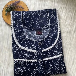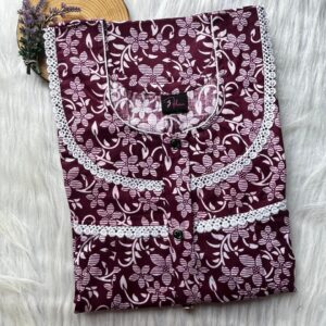 Cotton Pleated Double Lace Nighty With Zip